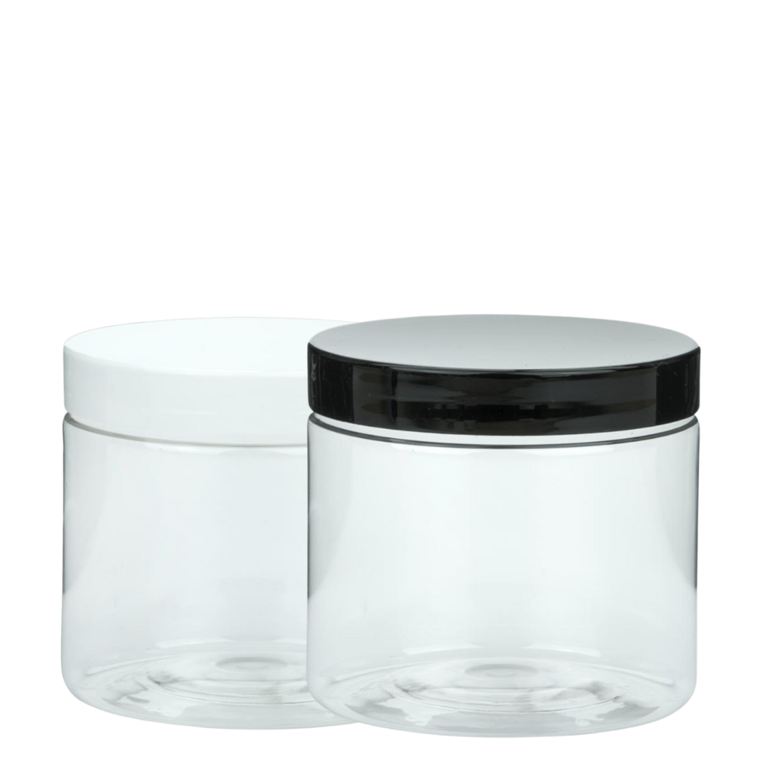 Our 4oz Plastic PET Containers are clear, durable jars ideal for beauty, haircare, and wellness products. Each container comes with your choice of a black or white closure and features a 58/400 neck finish, making it compatible with standard screw-top lids. The wide-mouth design makes filling and scooping easy, while the crystal-clear PET plastic showcases your product beautifully.